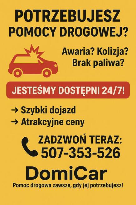 Pomoc drogowa -awaria -kolizja -brak paliwa -awaryjny rozruch Szybki dojazd, konkurencyjne ceny!